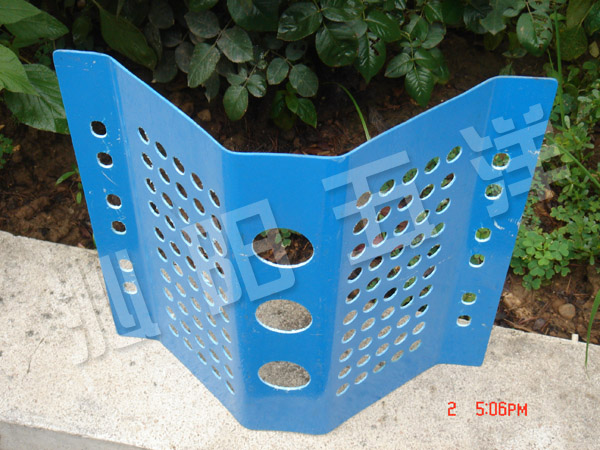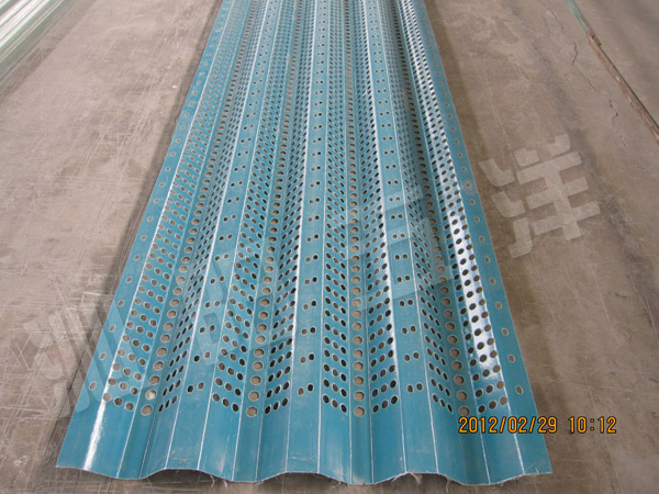 “擋風(fēng)抑塵板”采用有機(jī)玻璃鋼材料經(jīng)模壓一次成型。理論使用壽命15-20年。使用環(huán)境溫度-40℃~80℃。與支架的連接方式采用螺釘和壓板固定擋風(fēng)抑塵板的具體尺寸及開孔率應(yīng)根據(jù)不同堆場(chǎng)的實(shí)際情況進(jìn)行設(shè)計(jì)。